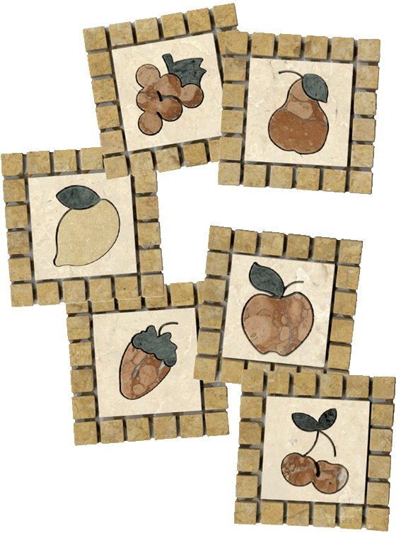 Frutta in marmo naturale a taglio idrogetto.
